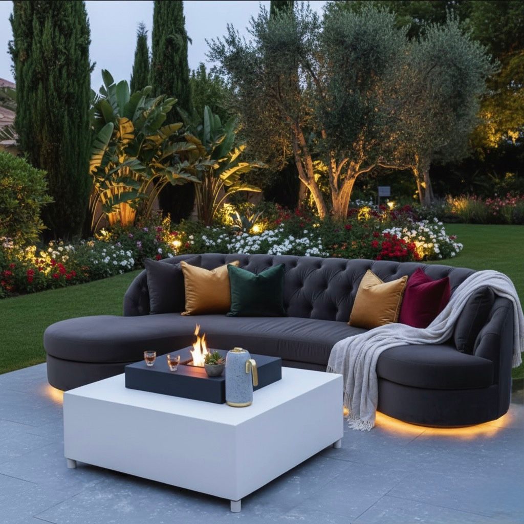 عند دمج موقد النار مع تنسيق حدائق احترافي، يمكن الحصول على مساحة خارجية متكاملة تجمع بين: